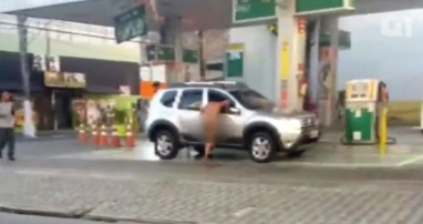 Mulher nua tenta invadir carro e motorista é salvo por frentista; vídeo