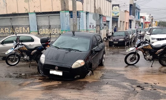 Carro cai em buraco após asfalto ceder no centro de Aracaju