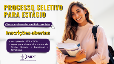 MPT-SE prorroga as inscrições para a seleção de estágio