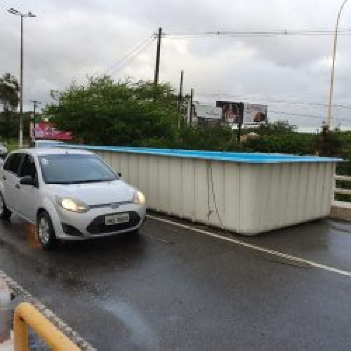 Uma piscina se desprendeu de uma caminhonete na manhã desta quarta-feira, 26, e provocou um engarrafamento de veículos na altura da ponte do rio Poxim, localizada na avenida Beira Mar, em Aracaju. O fato ocorreu por volta das 6h30 e provocou uma fila de veículos iniciada da ponte à região do Terminal da Zona Sul, no bairro Atalaia.