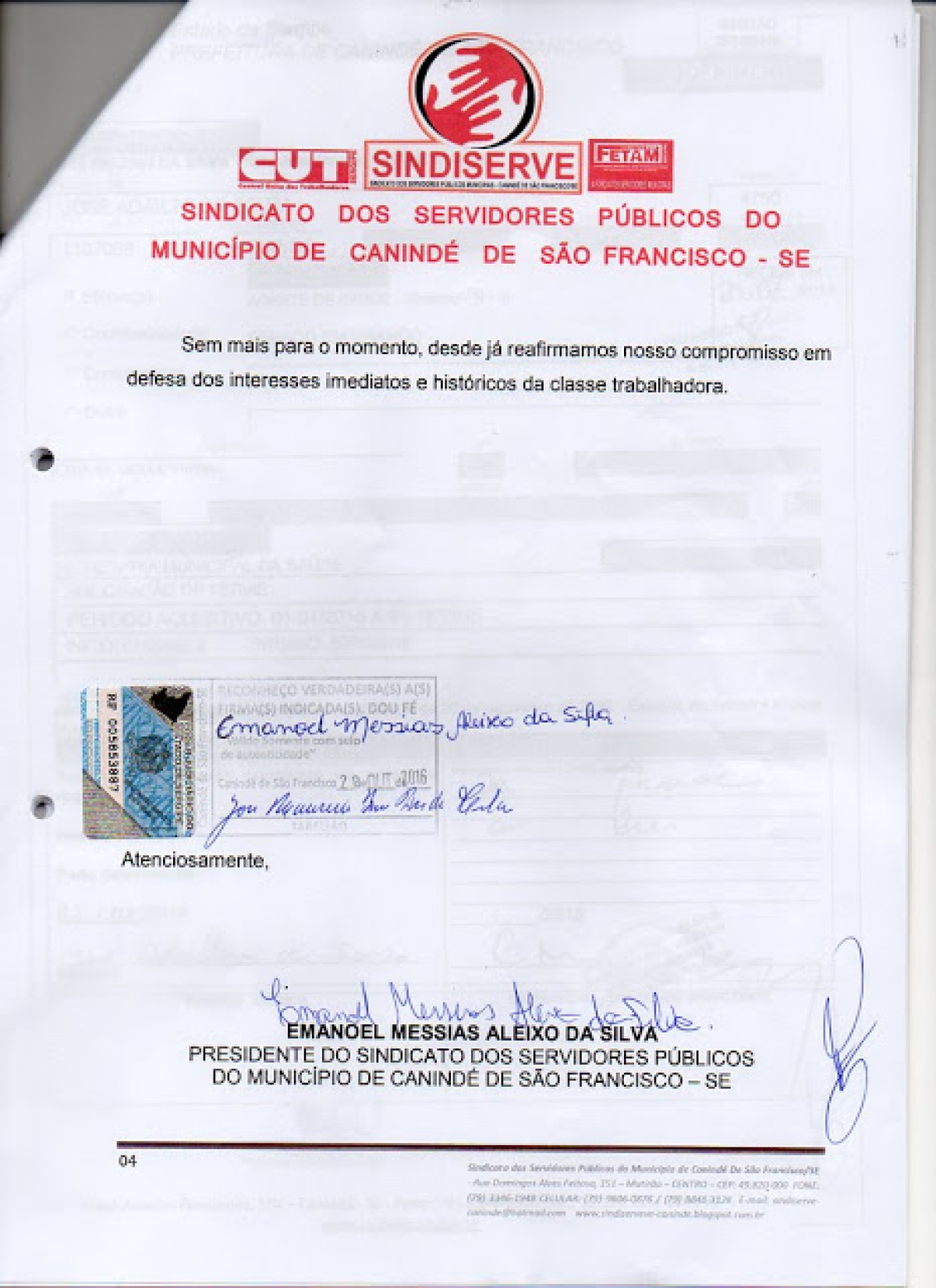 Sindiserve/Canind protocola pedido de cassao do mandato do prefeito Heleno Silva (Imagem: Sindiserve/Canind)![]()