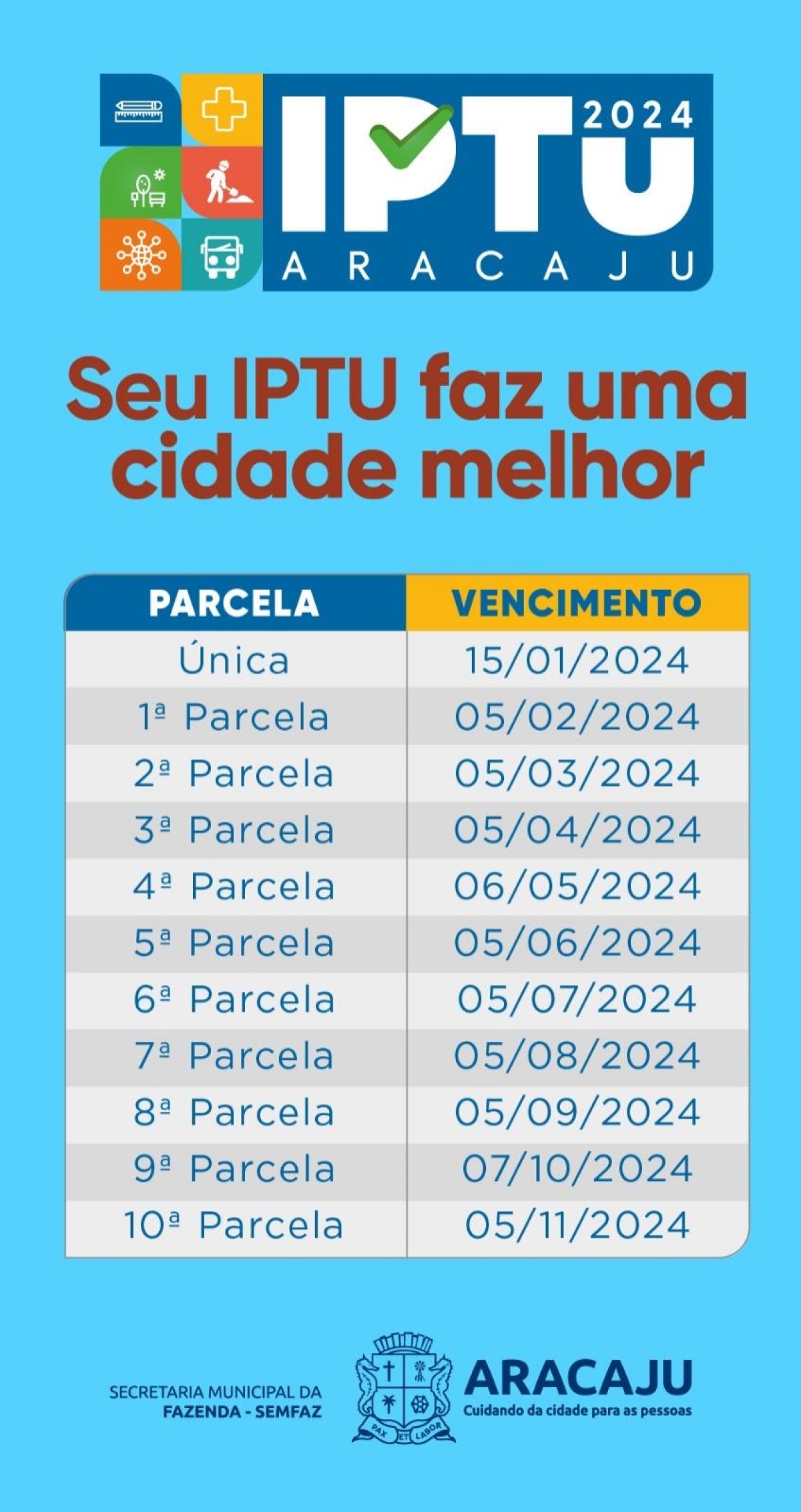 Prefeitura de Aracaju divulga calendário do IPTU 2024
