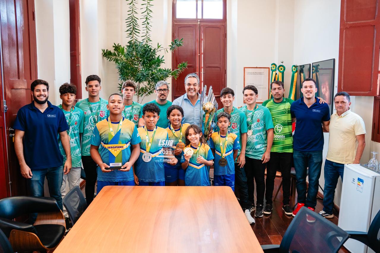 Na manhã desta quarta-feira, 26, o prefeito de Lagarto, Sérgio Reis, recebeu em seu gabinete os atletas do futebol Sub-15 e do Jiu-Jitsu. Os atletas do Sub-15 trouxeram um título inédito para a cidade, com a conquista do Campeonato Sergipano 2025. Já os atletas de Jiu-Jitsu, alunos do Centro de Iniciação ao Esporte, conquistaram 19 medalhas e o título de melhor equipe de Sergipe em 2025.