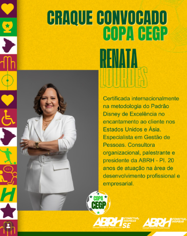 Certificada internacionalmente na metodologia do Padrão Disney de Excelência no encantamento ao cliente, com atuação nos Estados Unidos e na Ásia, Renata é especialista em desenvolvimento humano, consultora organizacional, palestrante e presidente da ABRH-PI, somando mais de 20 anos de experiência.