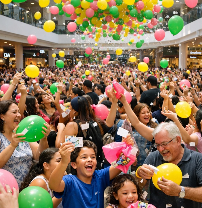 O ponto alto do evento ocorre às 17 horas, com a liberação de mais de 500 balões no hall principal. Serão distribuídos 150 prêmios no total, incluindo sapatos, bolsas, artigos de moda, maquiagem, vouchers de manicure e pedicure, vouchers de refeições na praça de alimentação, incluindo Va Benne e combos da Burger King, itens de perfumaria da Drogamed, vouchers de cinema e um armário multiuso de duas portas da Juli Concept, entre outros brindes.