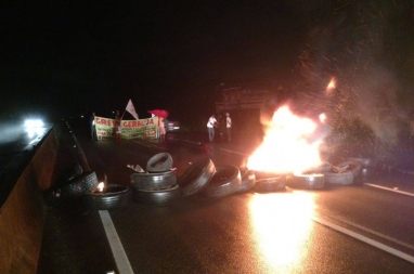 Polícia Militar prende grevistas e apreende pneus usados em bloqueio
