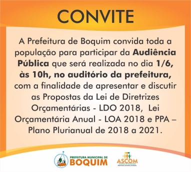 Prefeitura de Boquim promoverá audiência pública para discutir PPA, LDO e LOA