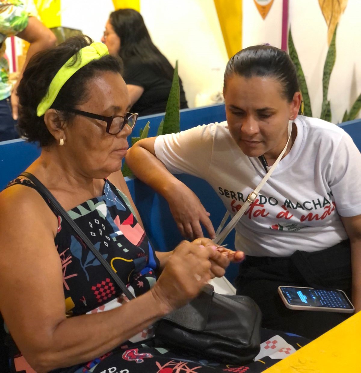 Mulheres assistidas pelo CRAS Benjamin Alves de Carvalho participam de oficina de crochê no RioMar Aracaju