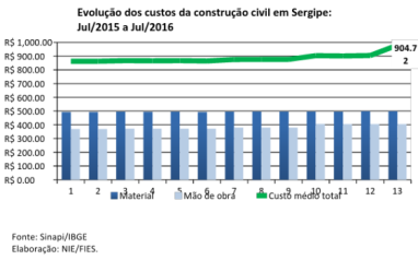 Em julho, custo da construção civil em Sergipe foi o segundo menor do país