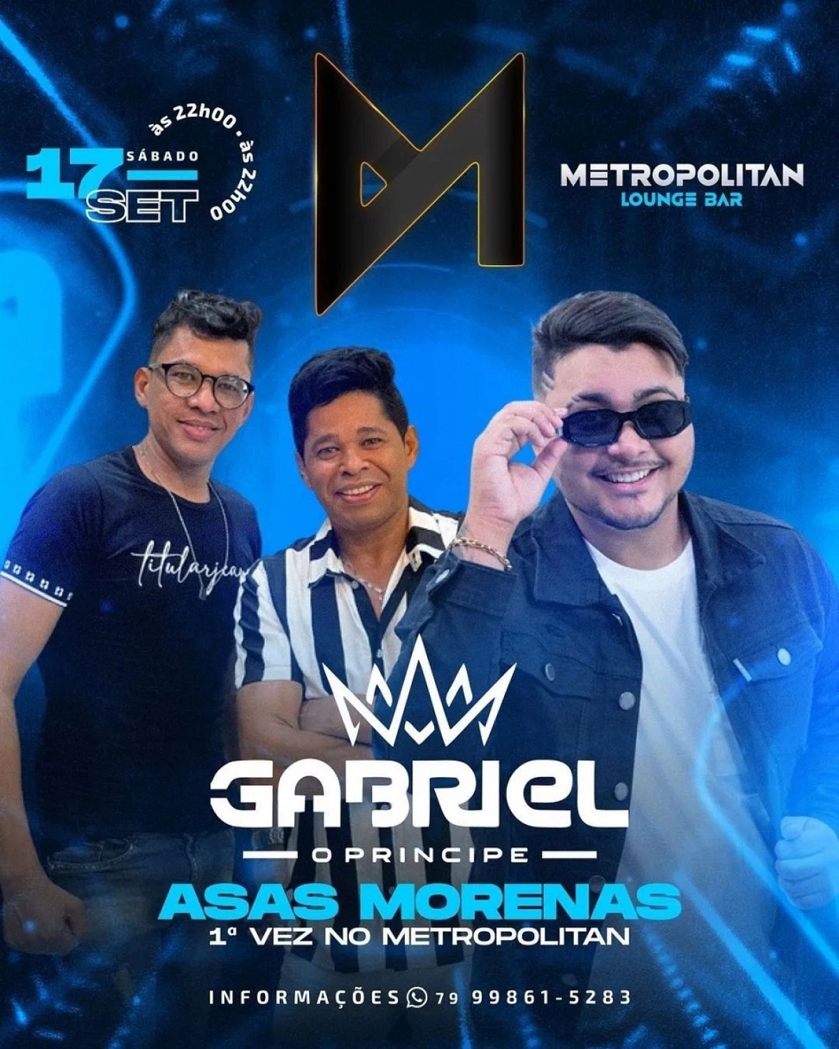 Já no sábado, 17, a banda Asas Morena pela 1• vez na casa e o cantor Gabriel, O Príncipe farão os agitos da noite.