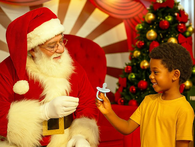 "Tchau, bubu!”: Papai Noel transforma a despedida da chupeta em momento de ternura