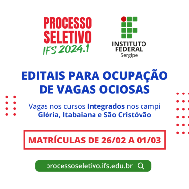 IFS oferta 75 vagas em chamada pública para cursos técnicos de nível médio na forma integrada