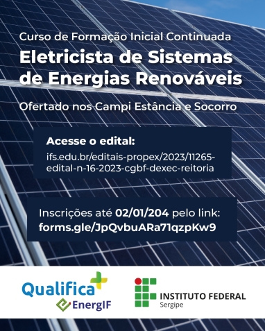 IFS oferta 40 vagas para cursos FIC de Eletricista de Sistemas de Energias Renováveis