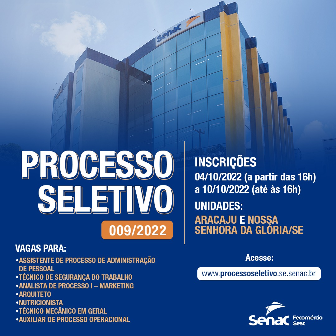 Senac/SE abre processo seletivo para vagas em Aracaju e Nossa Senhora da Glória