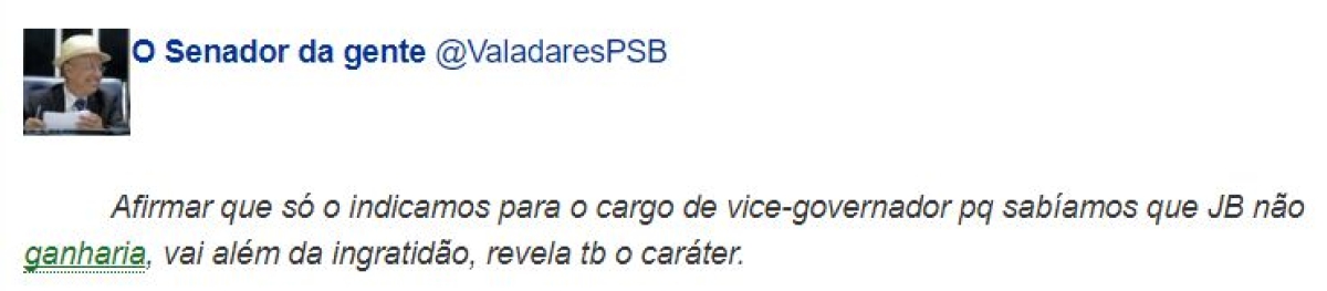Nas redes sociais, Valadares diz que Belivaldo é ingrato e questiona seu caráter: