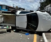Carro capota após avançar sinal vermelho, na zona sul de Aracaju
