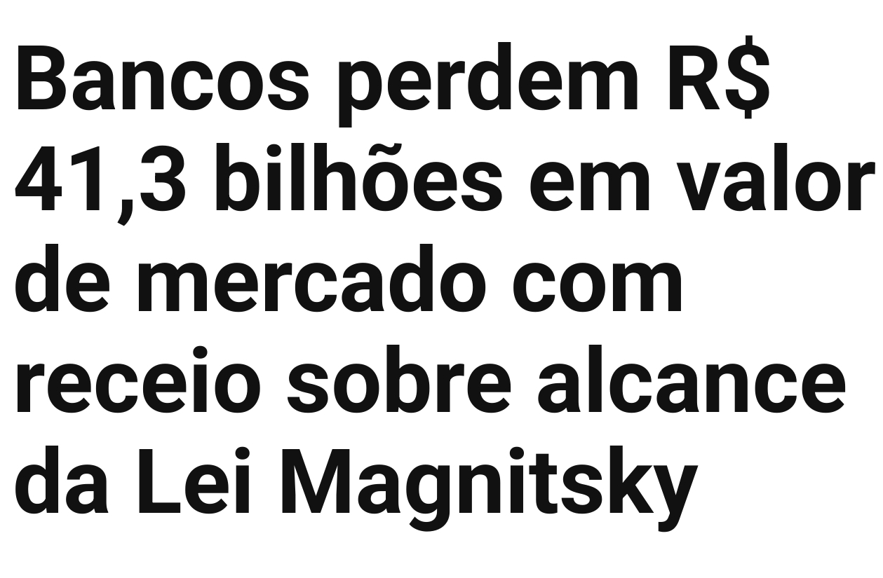 Bancos perdem R$ 41,3 bilhões em valor de mercado com receio sobre alcance da Lei Magnitsky