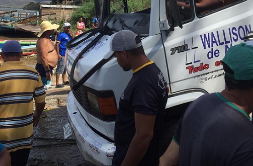 Caminhão carregado com pisos cai no Rio São Francisco