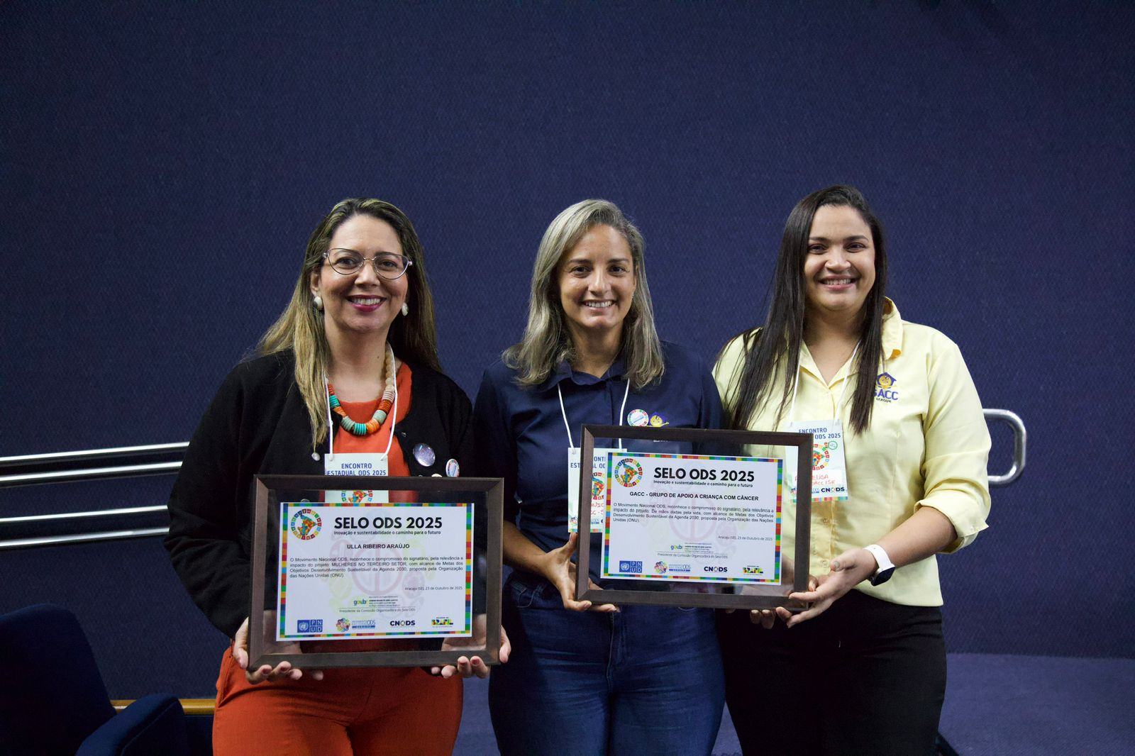 Durante o evento, Ulla Ribeiro recebeu o Selo ODS 2025 pelo Projeto “Mulheres no Terceiro Setor” pelo seu compromisso com a ODS 5 pela igualdade de genero promovendo inspiração e fortalecimento da mulher no Terceiro Setor para a construção de um futuro mais justo e solidário.