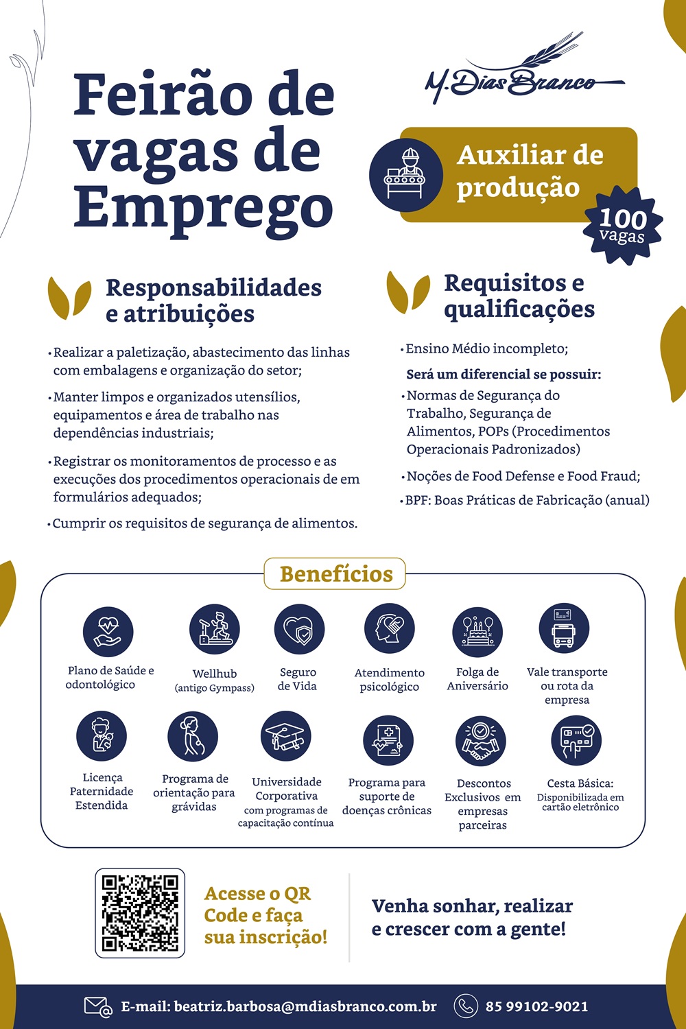 Feirão de Vagas de emprego da M. Dias Branco acontece nos dias 15 e 21 de janeiro no Ceará