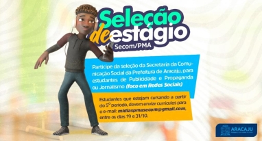 Estágio em Comunicação: Secom da Prefeitura de Aracaju abre seleção a partir desta quarta-feira, 19/10