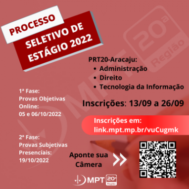 MPT-SE abre seleção para estágio em Administração, Direito e Tecnologia da Informação