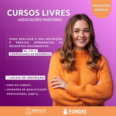 Prefeitura de Aracaju abre inscrições para 195 vagas em cursos livres nas associações parceiras