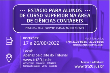 TRT-20 abre processo seletivo para estágio na área de Ciências Contábeis