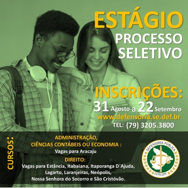 Defensoria Pública de Sergipe abre inscrições para estágio remunerado nos cursos de direito, administração, ciências contábeis e economia