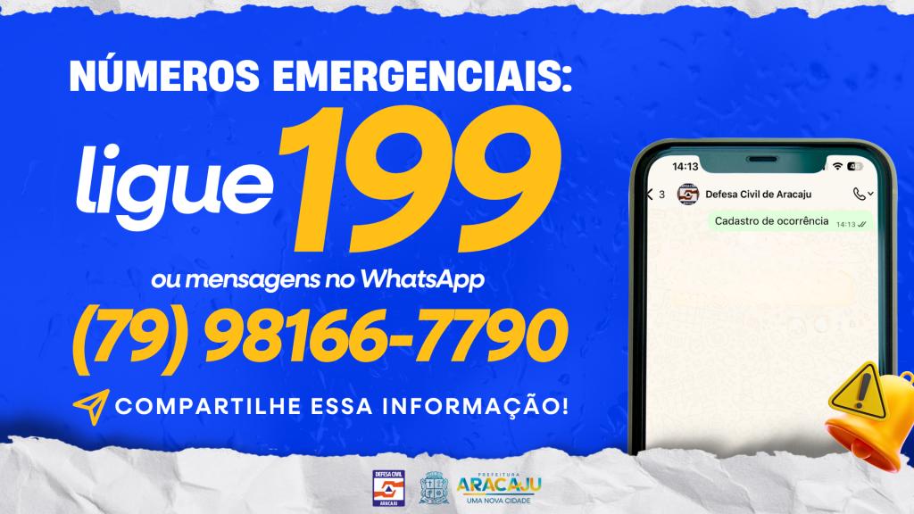 Defesa Civil de Aracaju disponibiliza WhatsApp para casos de emergência