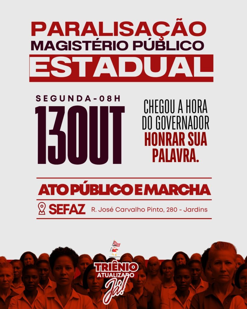 Diante da ausência de proposta e de uma ação efetiva por parte do Governo do Estado para a restruturação do triênio, vinculado ao vencimento, as professoras e professores da Rede Estadual de Ensino de Sergipe decidiram paralisar suas atividades.