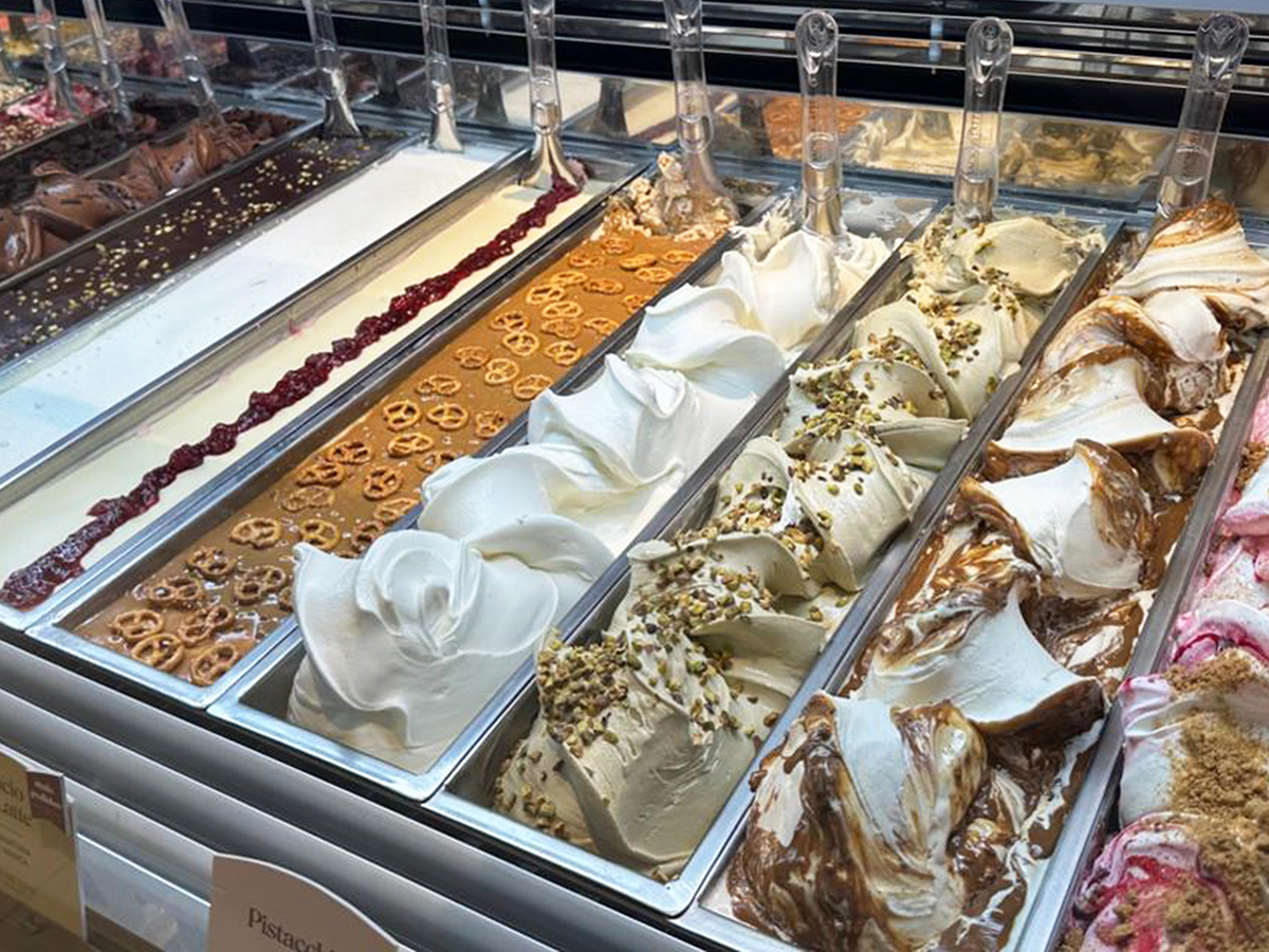 A gelateria oferece também picolés, milkshakes, sobremesas, cafés, chocolates e itens para presentear ou levar para casa, como cremes, licores e panetones em belas e sofisticadas latas. Opções não faltam para serem compartilhadas em família enquanto se aproveita a programação do mall.