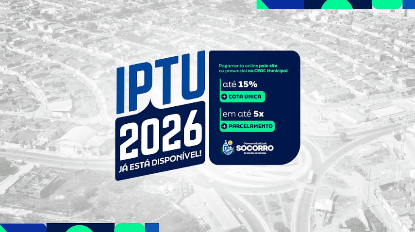 Já está disponível, através do site da Prefeitura de Nossa Senhora do Socorro, o carnê para pagamento do Imposto Predial e Territorial Urbano (ITPU) de 2026. Os contribuintes que realizarem o pagamento em cota única até o dia 31 de março têm 15% de desconto.