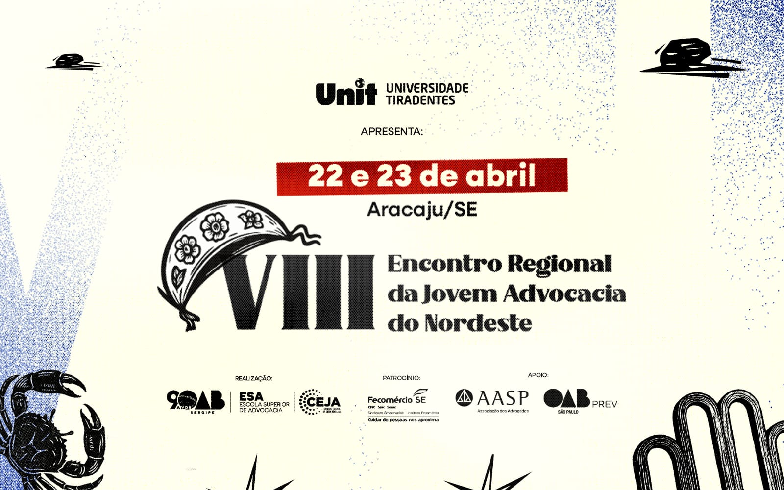 Nos dias 22 e 23 de abril, Aracaju será palco do VIII Encontro Regional da Jovem Advocacia do Nordeste, reunindo profissionais de toda a região para dois dias de intenso aprendizado, integração e fortalecimento profissional.