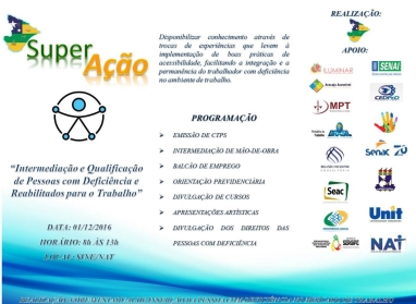 "SuperAção" para inclusão de pessoas com deficiência no mercado de trabalho será nesta quinta, 1