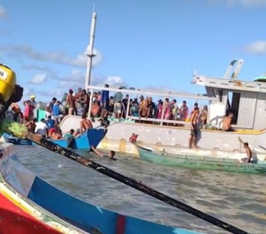 Sergipe: Embarcação encalha no litoral norte do estado e populares saqueiam a carga