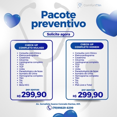 Saúde preventiva acessível: ComfortClin lança pacote completo de check-up para homens e mulheres
