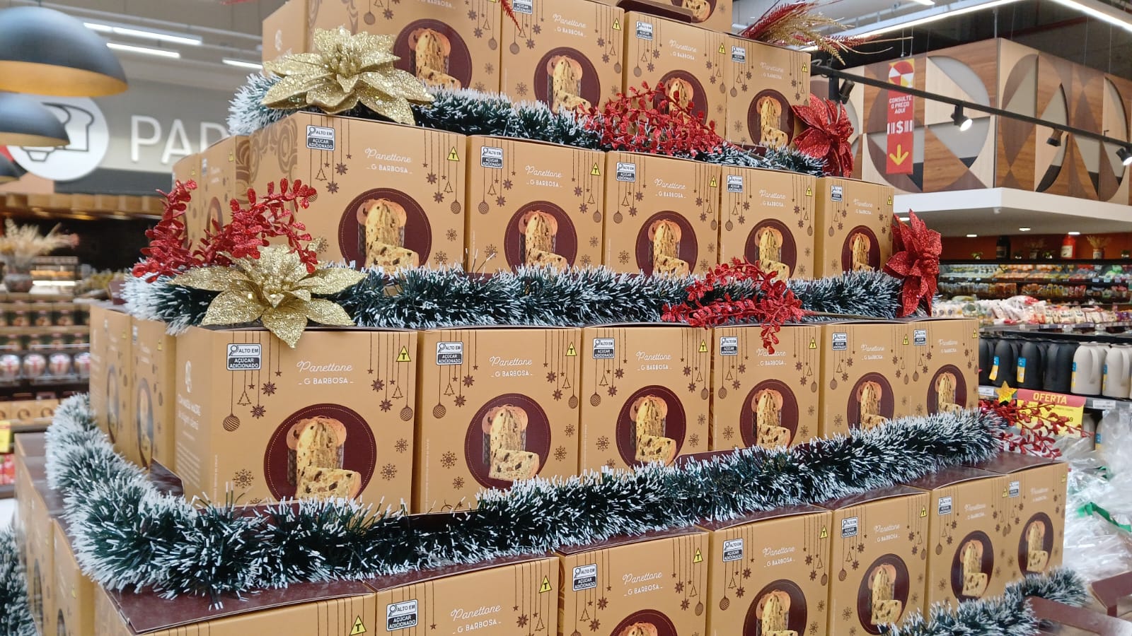 Durante os finais de semana há desconto de 50% na compra da segunda unidade dos panetones de 400g com frutas cristalizadas ou com gotas de chocolate. Com panetones a partir de R$ 14,99 no GBarbosa e R$ 19,99 na Perini, as redes estão abastecidas e também estão recebendo encomendas para as festividades de final de ano com até 72h de antecedência. A maior procura nas padarias das lojas vão desde o pão de queijo delícia (com ou sem recheio), aos pães de meio metro com recheio de frango, atum ou misto, kits de salgadinhos, docinhos e as famosas tortas Perini como a Red Velvet, Floresta Negra, Brigadeiro, Prestígio, Limão, entre outros sabores.