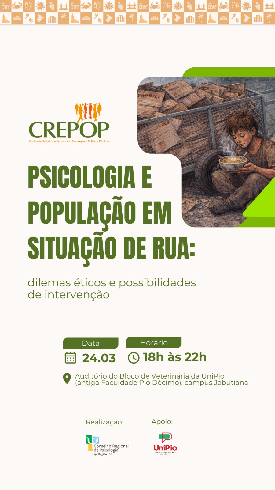 Psicologia e população em situação de rua: dilemas éticos e possibilidades de intervenção será tema de evento em Aracaju