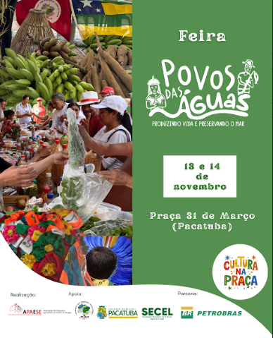 Nos dias 13 e 14 de novembro, acontece a I Feira do Projeto Povos das Águas, realizado pela Associação dos Pequenos Agricultores do Estado de Sergipe (APAESE), em parceria com a Petrobras, através do Programa Petrobras Socioambiental. A feira faz parte da programação do Cultura na Praça, celebração cultural que acontece em Pacatuba, uma realização da Prefeitura de Pacatuba e da Secretaria de Cultura do município.