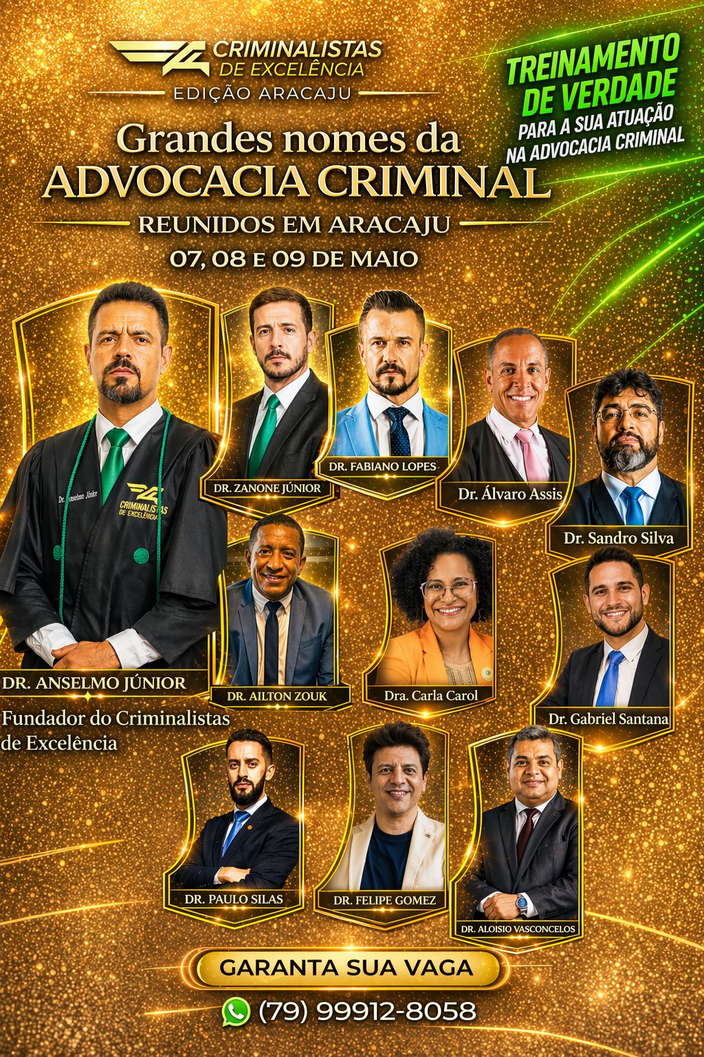 Entre os dias 7 e 9 de maio, Aracaju vai ser palco do evento 'Criminalistas de Excelência' que é um treinamento jurídico de alto nível, voltado à capacitação prática de advogados e estudantes de Direito que desejam atuar ou se destacar na advocacia criminal.