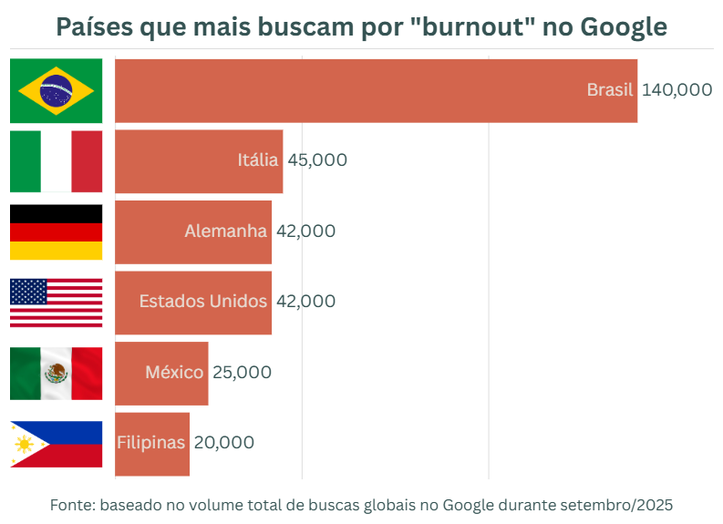 Brasil lidera buscas por burnout no Google, com mais de meio milhão de pesquisas em um mês