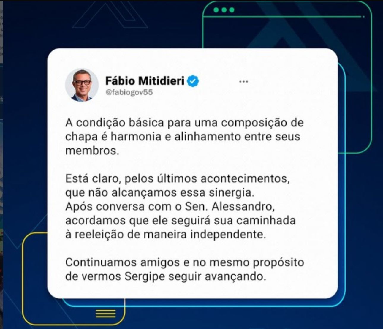 Fábio Mitidieri anuncia saída de Alessandro da chapa majoritária :: Por Fan F1